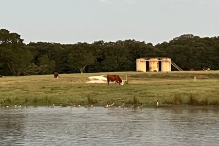 I have seen cows there drink from the club boat (vid on one of my previous reports) at Travis. I have caught a bass off of one of those cows standing in 3’ water. Never seen them swim there before. Very nice. Did see cows swim across neck across from launch area at Tara last year. Cool sight to see. Yes, Bovines swim!