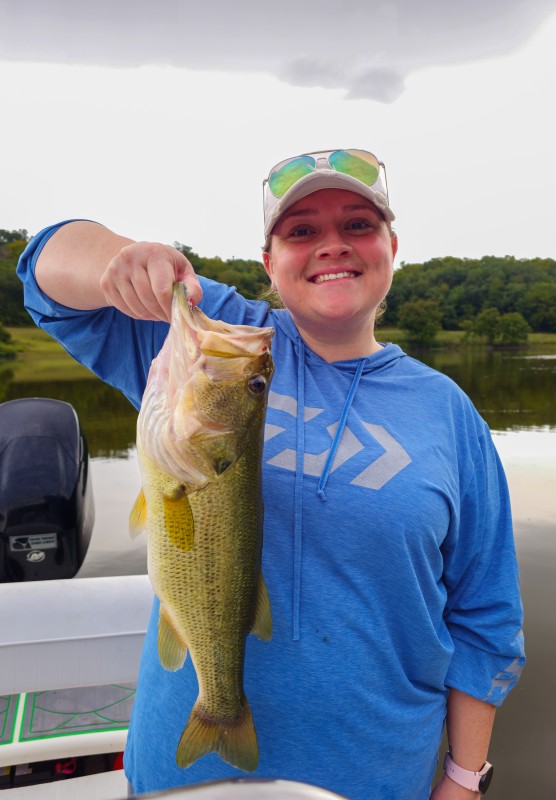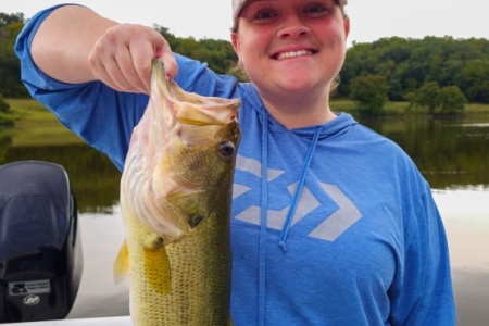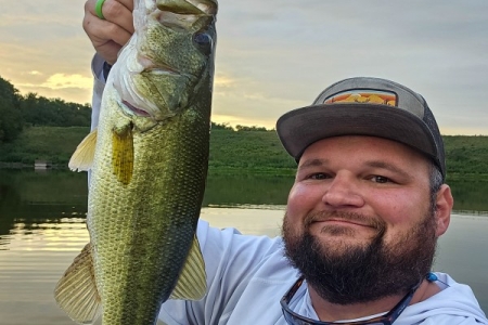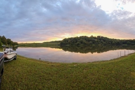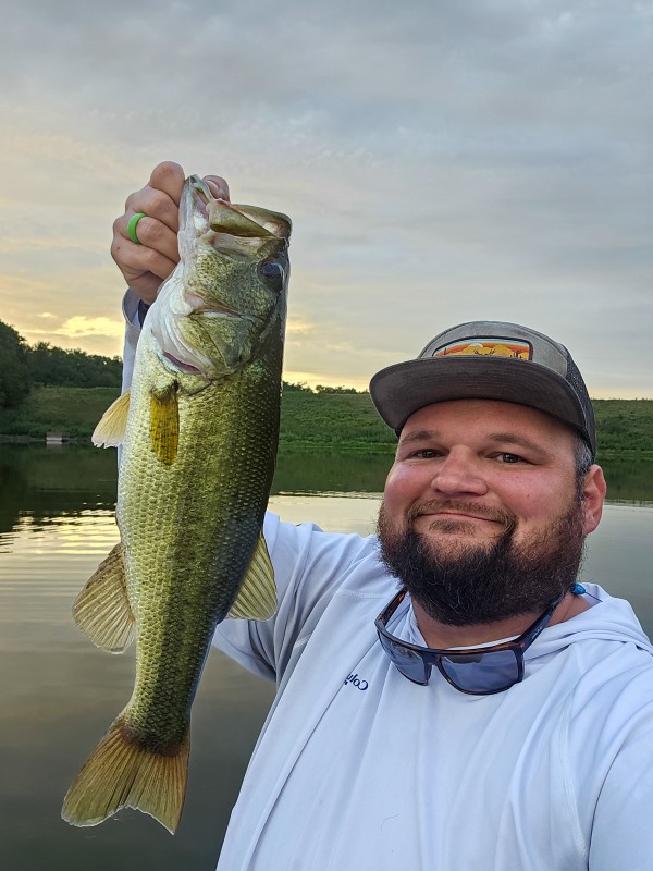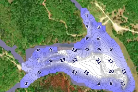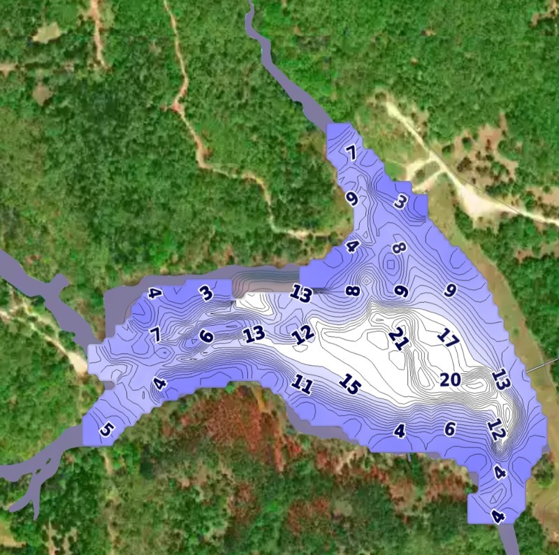 Once down to the launch area, the grass was neatly mowed, and there is plenty or room to launch anything you like, although the bank grade was pretty steep with the lower water level, we did get my skiff in with almost no fuss.. (Out however, well...read on) Once we got the boat in, we started picking up fish almost immediately on the edges of the thick grass about 50' from the bank. There is very thick vegetation 6-12" under the surface that covers about 50% of the lake and we got bit all day working the edges of this stuff. The water was stained and murky with around 6-10" of visibility and lots of sediment. We fished natural color chatterbaits all day and only had a few lulls longer than 20 minutes with no fish. The fish fought hard, regardless of thier weight class and were a blast at 10" or 18" long. Just after 10am a front moved through and we got sprinkled on for about 20 minutes but we fished though it and kept right on catching. The final count of the day was 26 bass, with 6 going in the cooler and a few more shook off at the boat. Best fish of the day, was a 3.11lb. For a little over a 3 hour bass mission, we were quite pleased. Now, when it came time to leave, I decided to retrieve my skiff at about 20' down the bank from were i launched, and that was a mistake. While the approach was straighter, the angle was more than my 2WD could handle when I backed up about 1' too far and the little shower that moved throught might as well be KY jelly on the grass as far as my tires were concerned ð Luckily I did have enough service to get an SOS out to Steve, who in turn called the landowner who was kind enough to give me a easy tug forward and save the day. Both he, and his wife were amazingly sweet folks and took my little inconvenience in stride. Big thanks to them and Steve! All that said, if your doing anything but hand launching or trailer launching anything other then the lightest boats, i'd recommend a 4x4, or you may also be making a phone call for help. P.S. I mapped out the lake for you guys with my Garmins! Here is a nice map of the bottom contours!